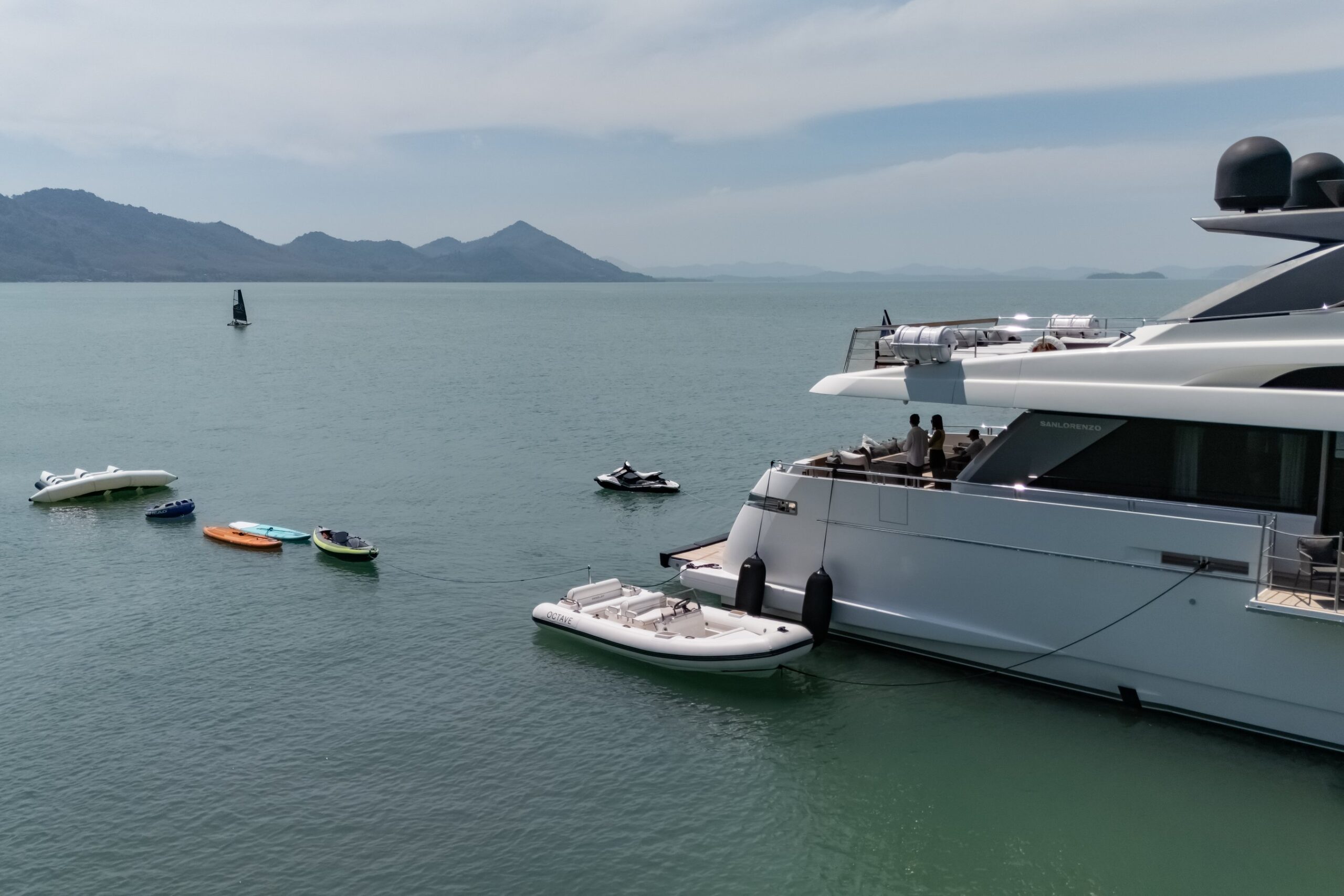 For guests seeking activity and exploration, the crew will have the tender and water toys ready at the swim platform. For those who prefer a slower start, the aft deck offers an inviting spot to enjoy a cool drink and take in the surroundings at your own pace.